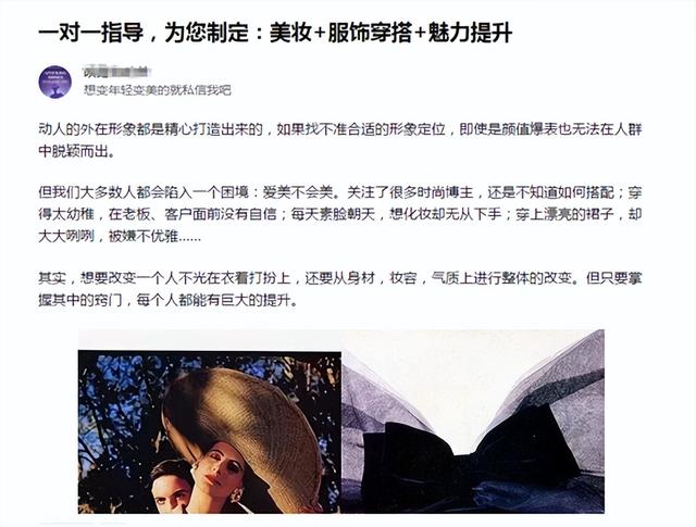 通过文章和图片,穿搭价值输出来吸引人,引流。然后建立社群,每周讲一次课。什么提升气质课,情感恋爱课,穿搭课都可以的,自己去🌸买课来讲解可以,请这些领域的作者来讲课,转化后进行抽佣也可以。