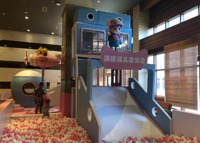 汤连得长清店的占地面积是非常大的,这家温泉馆诶一共有两层楼,一楼区域主要是洗浴区、汗蒸房、游乐区和餐厅。一进入温泉馆,首先看到的是一面玩偶墙,可以给小朋友拍点照片,在旁边还ꦜ有一个汉服的拍摄区。