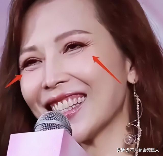 就算是加了磨皮,她的眼部状态也是♏藏不住的差,眼角的皱纹簇成一团,眼睛也像睁不开似的,眼神中全是疲惫,和精修图简直是两个人。
