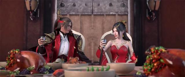 在这集中整个雪鹰领张灯结彩,为的自然是东伯雪鹰和余靖秋结婚的事情。这里也不得不感叹有生之年终于看到有一个国漫男主正式和女主结婚了,关键是这个男主不ꩲ主动,还是人家女主主动提出,最后这个男主才答应和女主结婚。