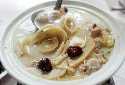 加肉炖煮:将肉煨至六成熟,再下入鱼面,等30-40分钟,鱼面散开即可盛出食用。
