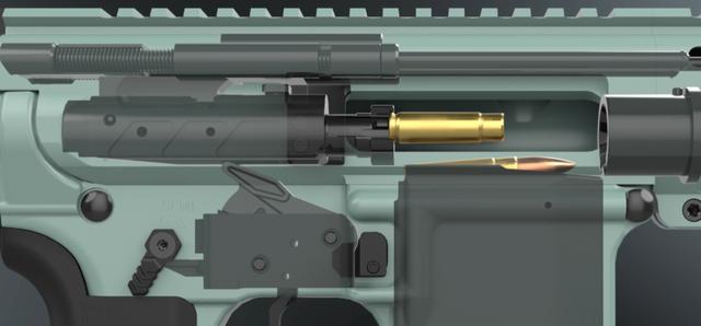 而为了抽壳更为顺畅,会弄一个半自由枪机,目的是延迟枪机后坐。子弹击发,膛压较高的时候,枪机并没有后坐也没有抽壳,等膛压降下来了,枪机才开始后坐。而这个径向延迟后坐,主要是在子弹击ꦅ发那瞬间,一部分气体会作用在机头上,气体驱动机头向后,使机头从闭锁槽内解脱,以此延迟枪机后坐,等机头解脱之后,膛压降低了,枪机才开始后坐,使抽壳更顺畅。