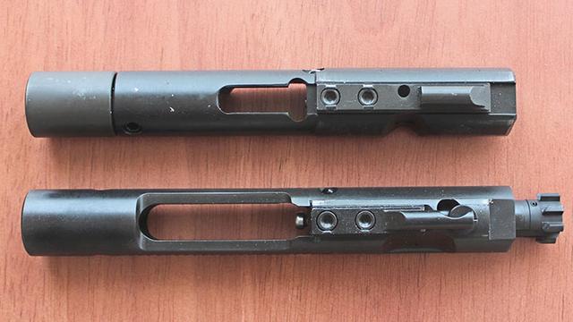 这个🀅所谓的径向延迟后坐,简单来说,就是在机头的七个闭锁凸笋上面,做了切角,并非AR15的正方形闭锁凸笋了。这🍌个闭锁凸笋可以将弹膛卡住,但是并没有卡死,枪机顺着机头的斜面,是可以划出来的,属于一个半闭锁状态。