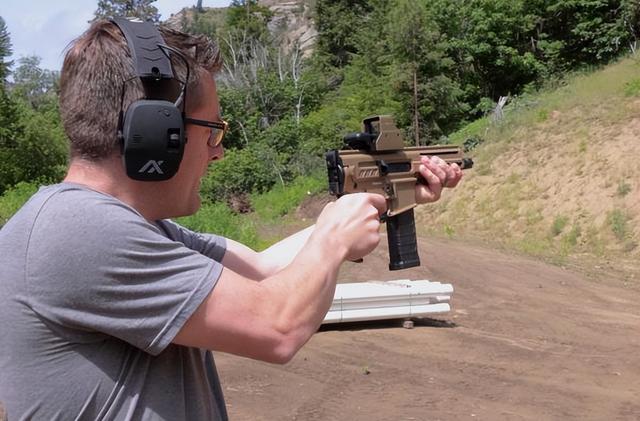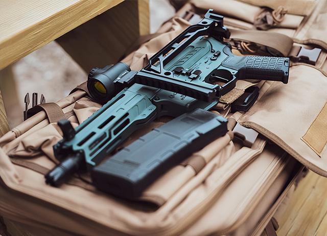 Dissent的定位是个人防御武器,属于PDW的一个范围。主打的点就在于短小、轻便。所以,在设计上,也是尽可能地降低重量和长度。Dissent总共有三个口径版本,5.56mmNATO、.300BLK和5.7mmNATO。所有版本的重量都是4.6磅,大概2公斤,折叠枪托后长度14.7英寸,大概37公分。枪管是6.5英寸,护木5英寸,机匣总长也才8.2英寸。