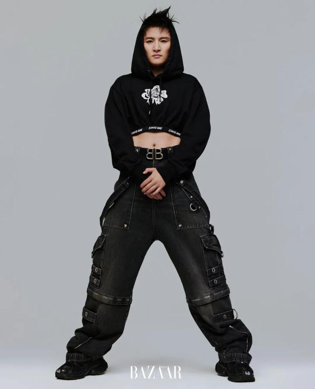 牛仔裤、运动鞋、腰带 均为 Balenciaga