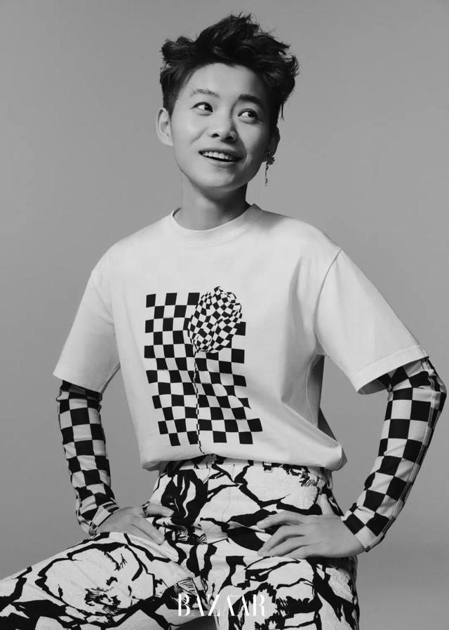 王珊珊 球衣 私物;缎面短裙、腰带 Prada