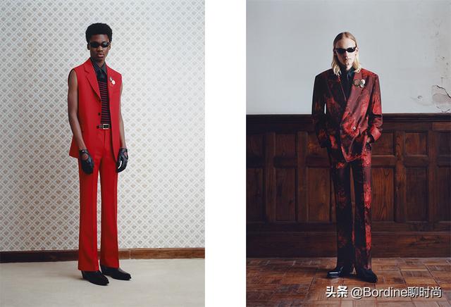 这些融合ꦿ着西服✨元素的套装上,无袖的马甲款式在和一些黑色等深色颜色的搭配中,增加了色彩冲击和层次美感;还有一些暗红色颜色与鲜艳红色之间的对比,在不同色彩之间的对比中,为西服的套装增加了更为丰富的色彩表达,也多了图案的活力。