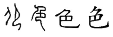 “色”是个会意字,本义为人的脸色。甲骨文的“色”字,左边是一把刀,右边是一个跪坐在地的人,近代著名文字学家唐兰认为,这代表断绝之义。另一种看法认为,这也像是一个人正驮着另一个人,依照他的脸色行事。另外,还有人认为“色”和“绝”本是同一个字,意思都是断断续续的丝线,后来“色”被假借为“颜色”。女子美貌也称“色”,如姿色。