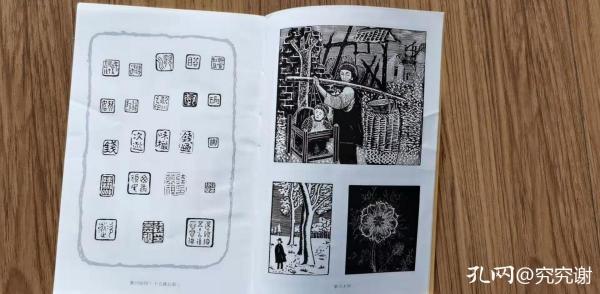 这本《中华童话》还有个很大的亮点——全书所有精美的插图,都是钱歌川先生亲手绘制的。钱先生从小就对绘画有浓厚的兴趣,幼时还学过篆刻和书法,在日本留学时本来想学美术的,但为了生计未能如愿。这次在英国游学,就特地到市立工ಞ艺学院学习了绘画和木刻,并在短时间里取得了令老师惊诧的进步,他作为习作的木刻自画像也被树为典范𒐪——钱先生自己觉得可能与幼时打下的篆刻基本功有关。他还与两位年轻的女画家洛德尔(Sylvia Lowdell)和史佩林(Christine Spurling)成了亲密的朋友,多次结伴同游,在回国多年后还保持着书信联系。《中华童话》的前言末尾写着:“我还要诚恳地感谢西尔维娅·洛德尔小姐,她在插图方面给了我很多帮助。”刚好港版自传前附有一些钱先生木刻、篆刻和书法的真迹,我这里就借用一下。下面这些彩色插图,则选自英文原版《中华童话》。钱先生的多才多艺,由此可见一斑。