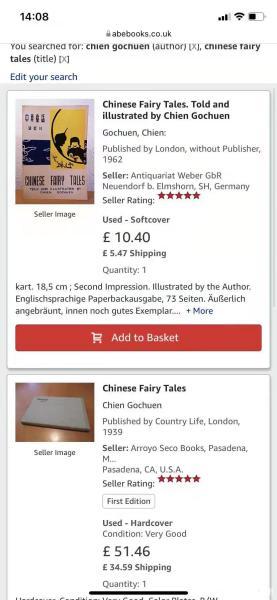 钱先生到英国后不久,国内就爆发了全面抗日战争。他自费留学的经费有限,而当时欧洲也战云弥漫,一旦战争爆发,海上的邮船都有触雷沉没的危险,于是决定趁早买舟东返,投身抗战伟业。因为走得匆忙,加上随后的战乱,这本《中华童话》的版税,他一文钱也未领到,但他表示“书能出版,已使我感到满足了”。前几天,一位在英国的书友帮我查了一下,除了不多的几本1939年版的精装本,abebooks.com上还有一种1962年的平装本在售。我看那个平装本没有出版社信息,装帧形式也可疑,怀疑是香港盗版的。这书直到问世五十多年后才在大陆出版,这就是中南工业大学出版社1993年12月出的英汉对照译注本。