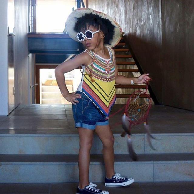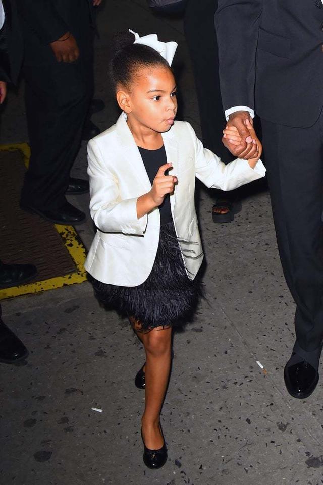 一头卷发、穿一身黑的Blue Ivy,看起来酷劲十足、霸气外露。
