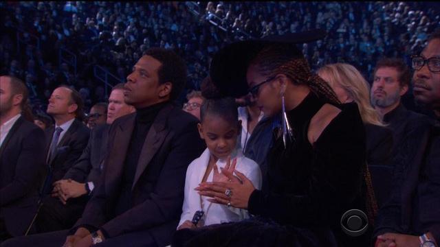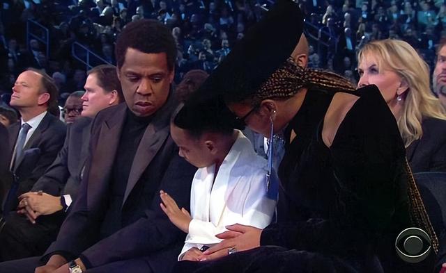 2020年,这一家三口坐在格莱美的第一排座位上,舞台上叱咤风云的爸妈到了蓝厅长面前,只能乖乖帮她拿饮料、拿玩具。