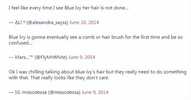 “我不怎么在意Blu꧅e Ivy的头发,但他们真的得做点什💮么给孩子捯饬一下头发了,他们看起来好像真的不在乎一样。”