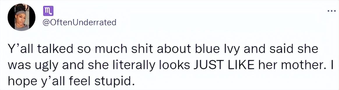“曾经你们说了那么多Blue Ivy的坏话,说她长得丑。