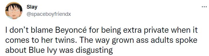 “真的不怪碧昂斯在自己的双胞胎孩子上格外注重隐私。只能𒅌说成年人们对Blue Ivy的网暴太恶心了。”