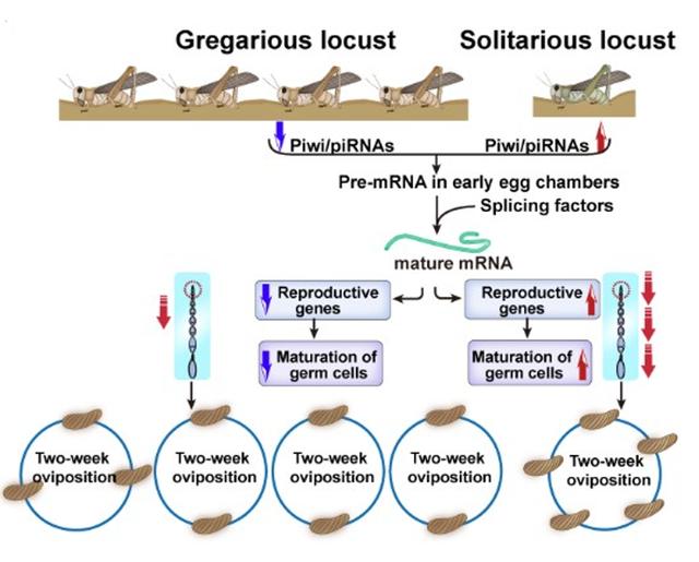 2022年4月26日,Cell Reports杂志在线发表了来自中科院动物研究所/生物互作卓越中心康乐院士团队联合复旦大学基础医学院青年研究员魏园园题为“piRNA-guided intron removal from p💟re-mRNAsregulates density-dependent reproductive strategy”的研究论文,该研究揭示了飞蝗适应种群密度变化而导致后代数量改变的分子机制。