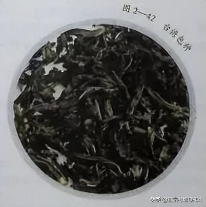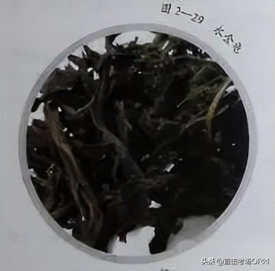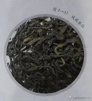 3)梅占🥀。梅占的品质特点∶条索壮实长大,梗肥节长;色泽褐绿稍带暗红色,红点明。冲泡后,香♍浓,有芬芳之气,滋味厚,汤色深黄或橙黄,叶底叶张粗大,方脉明显,叶边缘锯齿粗锐。梅占如图2一38所示。