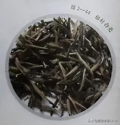 白牡丹的品质特点∶外形不成条索,似枯萎花瓣,色泽灰绿或暗青苔色;冲泡后,🐓香气芬芳,滋味鲜醇, 汤色杏黄或橙黄,叶底浅灰,叶脉微红,芽叶连枝。白𒈔牡丹如图2—45所示。