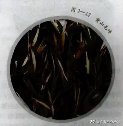 ①正山小种。⛎正山小种品质特点∶外形条索肥壮重实,色泽乌润有光。冲泡后,香气高长带松烟香,滋🅰味醇厚带桂圆味,汤色红浓,叶底厚实,呈古铜色。正山小种如图2—24所示。