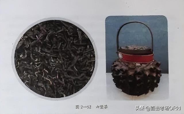 湖南黑茶条索卷折成泥鳅状,色泽油黑,汤色橙黄,叶底黄褐,香味醇厚,具有烟香。湖南🃏黑茶如图2ꦛ-49所示。