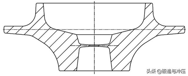 虽然此零件形状结构复杂,锻件重量偏重,但属于典型的回转体零件,常规模锻成形工艺设计为镦粗和模锻联合成形工艺✅,考虑我公司设备布局现状,结合现有锻件生产经验,决定在16t模锻锤上采用直接模锻成形,可以提高生产效率,降低模具成本。