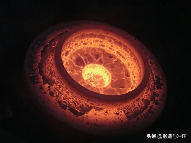 此锻件为超大型挖掘机大臂上使用的零件,最大外径尺寸为660mm,总高度为250mm,中间最大盘部外缘最薄处仅为25mm,上模环形较窄凸环高度尺寸为85mm,宽度尺寸仅为26mm,锻件重量达到190kg,由于其形状结构复杂,锻造成形工艺性较差,存在盘部打不靠🌺及环形凸环较难充满的质量隐患;根据《锻工手册》模锻锤锻打压力经验公式进行计算,只计算包括桥部宽度在内的锻件投影面积,此锻件最大锻打压力达到25t,最小为14.3t,通过锻打压力计算,我公司只有16t模锻锤ꦅ能满足此零件锻打工艺要求。