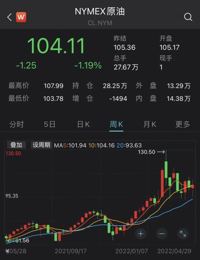 2021年以来,原油价格已经上涨至100美元/桶以上,截至2022年4月底,价格在104♚美元/桶左右。
