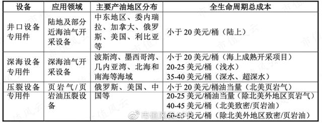下游应用而言,井口设备是陆上石油,深海设备是海上石油,而压裂设备是页岩油。