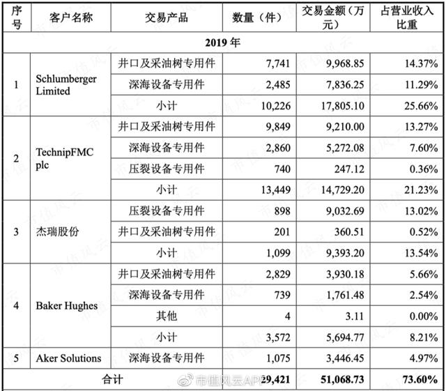 迪威尔的客户并不是直接面对石油公司,而是先卖给油气技术服务公司,🗹比如TechnipFMC、Schlumberger、Baker Hughes、Aker Solutions、杰瑞股份(国内A股上市公司)。