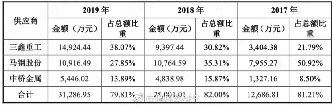 其中前三大供应商三鑫重工、马钢股份和中桥金属采购的都是特钢,这三家ꦍ采购特钢金额及♛占特钢采购总额的比例高达80%以上。