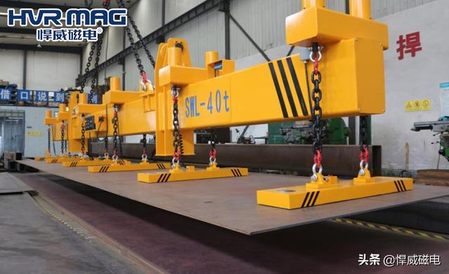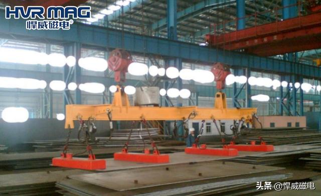 2,电磁吊具也是用于搬运钢材的重要设备,它的主要部分是由电磁铁和线圈构成,只有当通电时,电磁铁才牢牢吸住导磁工件并将其吸附、搬运到指定位置。一旦电流断开,磁性便立即消失,电磁吊具则马上释放导磁工件。电磁吊具使用起来非常方便,但是它的局限性在于严重依赖电源,由于工作状态需要长时间通电,因此电磁吊具里面的线圈非常容易烧坏,后期维护成本比较高,当机械制造车间发生停电或者电路故障时,电磁吊具则极易𝄹发生钢板等工件掉落⭕现象。