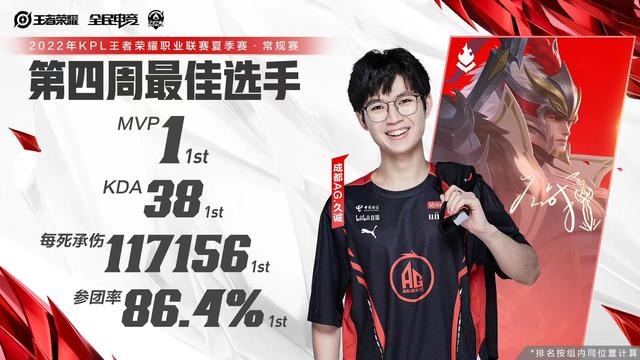 💙常规赛第4周,AG超玩会跟TTG交手,最终𒊎AG超玩会轻松以3比0战胜TTG;而WB则是跟狼队交手,最终WB也是以3比0轻松战胜狼队。因为AG超玩会跟WB在这一周都是取得了完全胜利,所以两队直接包揽了全部的周最佳奖项,其中WB喜提周最佳对抗路、周最佳打野、周最佳游走,而AG超玩会则是喜提周最佳中路、周最佳发育路,另外周最佳选手也给到了久诚。