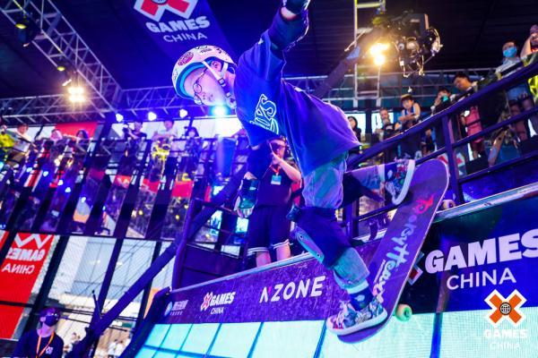 大卫·柯尔在X GAMES CHINA 2022滑板U池巡回赛比赛中。图片由赛事主办方提供