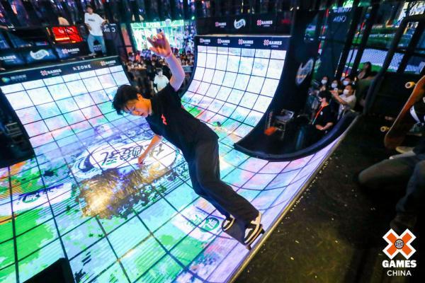 陈子锋在X GAMES CHINA 2022滑板U池巡回赛比赛中。图片由赛事主办方提供