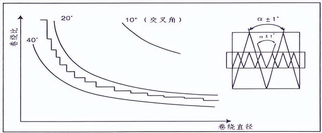 所谓卷绕比,就是横动导纱器每往复一次,纱筒卷绕的圈数。卷绕比保持恒定,卷绕角则随卷装直径的逐步增大而变小(见图3),卷装容量可比槽筒卷绕增加25%-30%,即同体积下无🎀接头线长可增加25%-30%,无卷绕重叠,无分💃纱现象容易退绕。